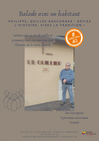 En prenant rendez-vous auprès de l'Office de Tourisme, initiez-vous à ce jeu traditionnel gascon auprès de quillous (joueur) passionnés et passionnants !