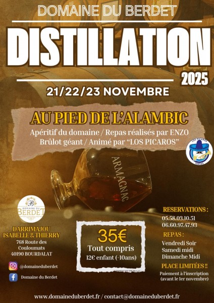 Distillation au pied de l'alambic (Du 21 au 23 Novembre 2025) :
