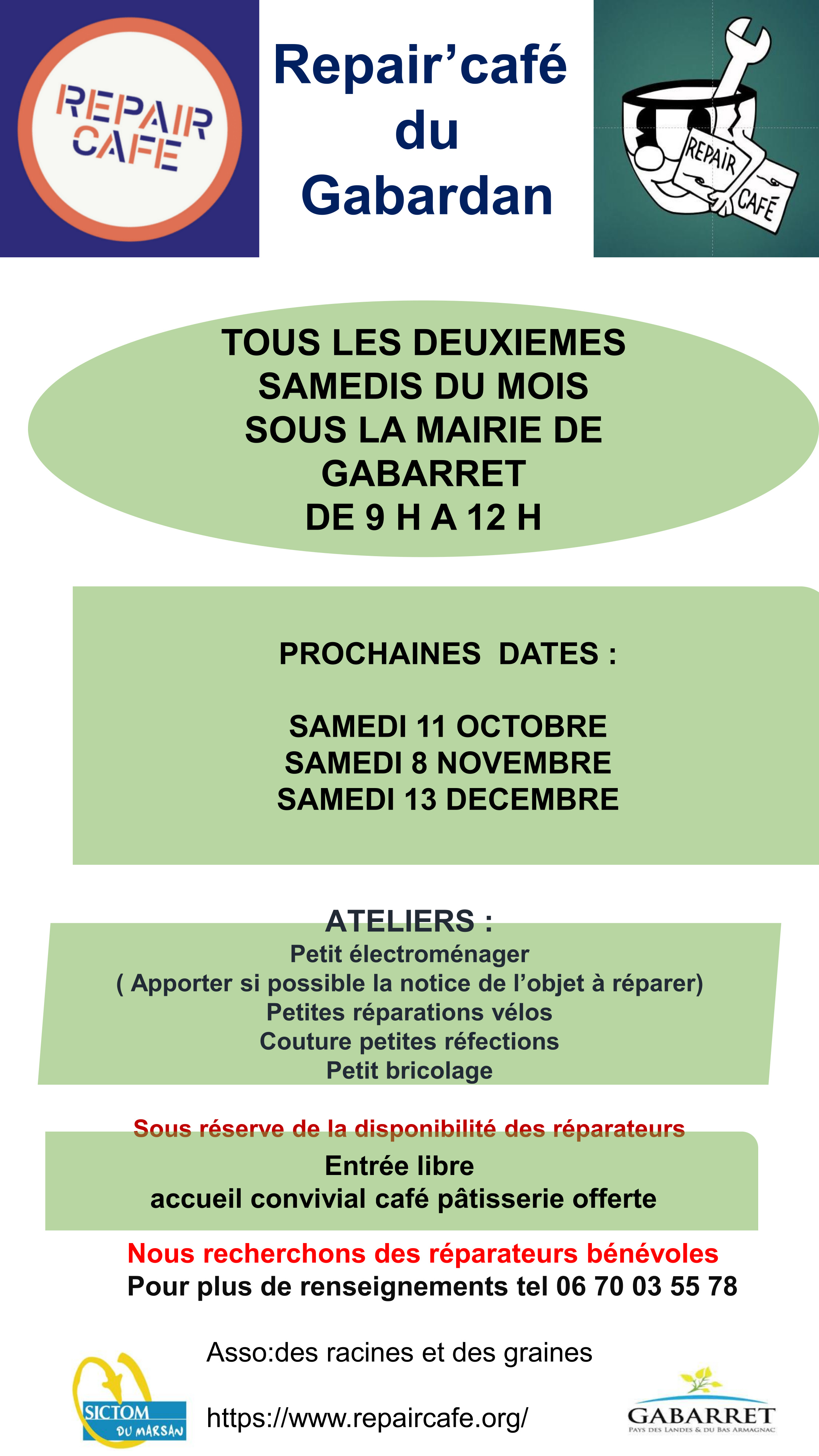 ATELIERS : Petits électroménagers, Petites réparations vélo, Petits bricolage (sous réserve de la disponibilité des réparateurs bénévoles)