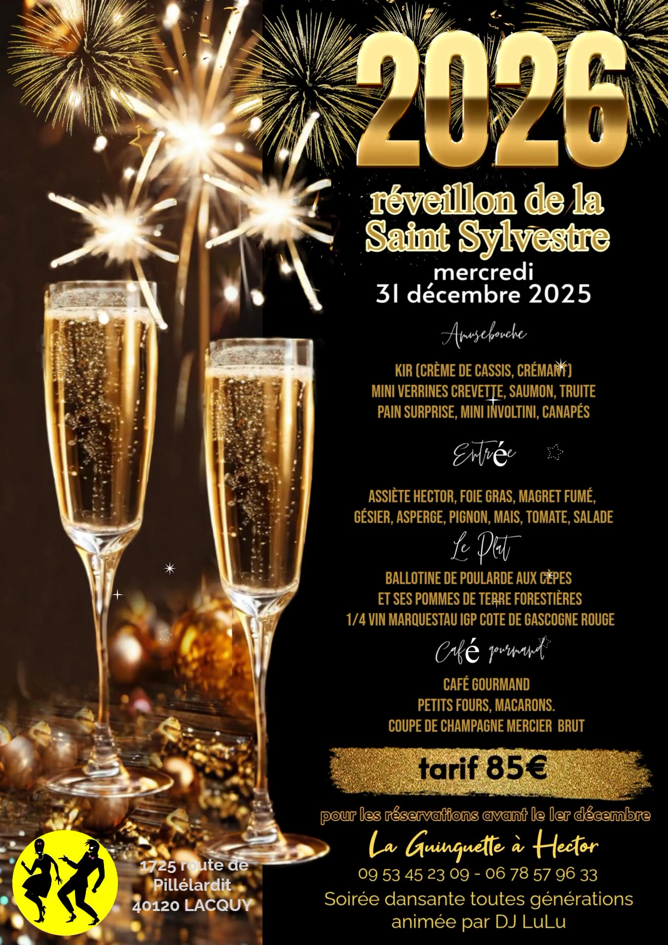 | Adresse | La Guinguette à Hector 1725 Route de Pillelardit 40120 Lacquy |
