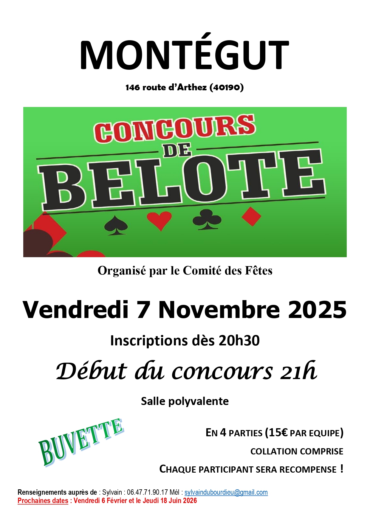 | Adresse | Salle Polyvalente 146 route d'Arthez 40190 Montégut |
